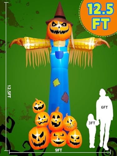 Die 12,5FT Halloween Deko Aufblasbare Kürbis Vogelscheuche – Ein Gruselspektakel für Ihren Garten!