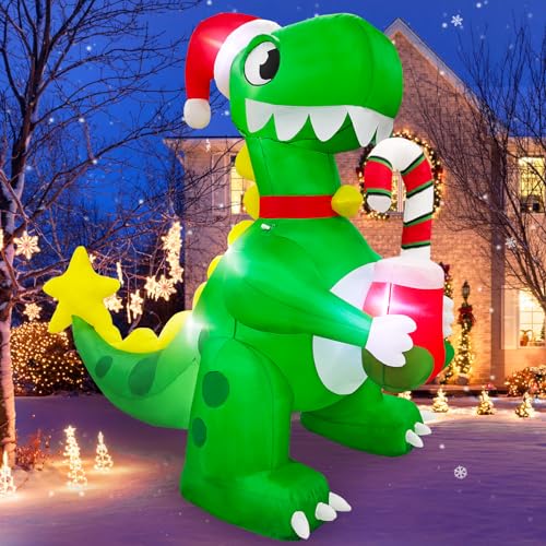 Stellen Sie sich vor, Sie treten in Ihren Garten ein und werden von einem fröhlichen, 2,13 Meter hohen Dinosaurier begrüßt, der einen Weihnachtsmann-Hut trägt und einen prall gefüllten Weihnachtsstrumpf mit einer Zuckerstange in der Hand hält. Ja, genau das bietet Ihnen unser aufblasbarer Weihnachts-Dinosaurier! Diese einzigartige Außendekoration bringt nicht nur festliche Stimmung, sondern auch eine gehörige Portion Spaß und Staunen in Ihr Zuhause.