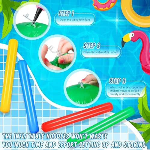 Diese aufblasbaren Schwimmnudeln sind nicht nur für Kinder gedacht! Egal, ob Sie ein erfahrener Schwimmer oder ein Wasserratte im Rentenalter sind, unsere Poolnudeln bieten Ihnen die perfekte Unterstützung. Sie können sie als Schwimmhilfe nutzen oder einfach darauf sitzen und die Sonne genießen. Wer braucht schon einen Liegestuhl, wenn man auf einer bunten Nudel entspannen kann? Und keine Sorge, die Nudel wird nicht platzen, selbst wenn Sie sich wie ein Walross darauf setzen!