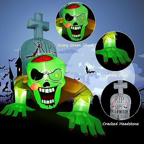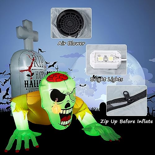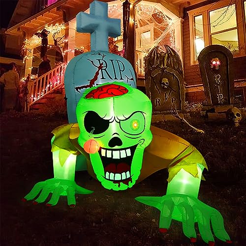 Die perfekte Halloween-Dekoration: Der aufblasbare grüne Zombie mit Grabstein