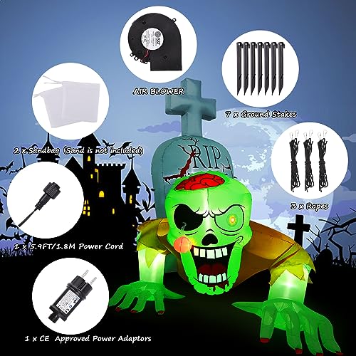 Wenn die Blätter fallen und die Nächte länger werden, ist es an der Zeit, die gruseligsten und lustigsten Halloween-Dekorationen aus dem Keller zu holen. Doch dieses Jahr sollten Sie sich nicht mit dem Gewöhnlichen zufriedengeben! Heben Sie Ihre Halloween-Dekoration auf die nächste Stufe mit unserem 5,7 Fuß (173,7 cm) aufblasbaren grünen Zombie mit Grabstein. Diese unheimliche und fesselnde aufblasbare Figur verleiht Ihrem Garten ein geheimnisvolles und überraschendes Element, das Ihre Nachbarn und Gäste sofort beeindruckt und begeistert.