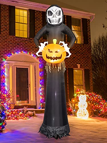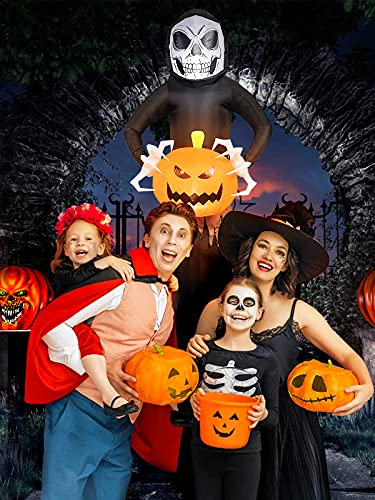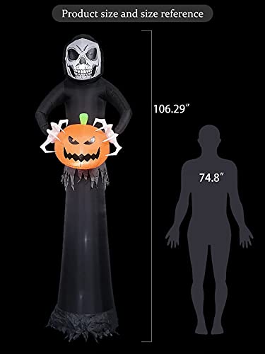 ### 8.8Ft Halloween Aufblasbare Dekoration: Riesiger Halloween Geist Kürbis mit LED-Lichtern