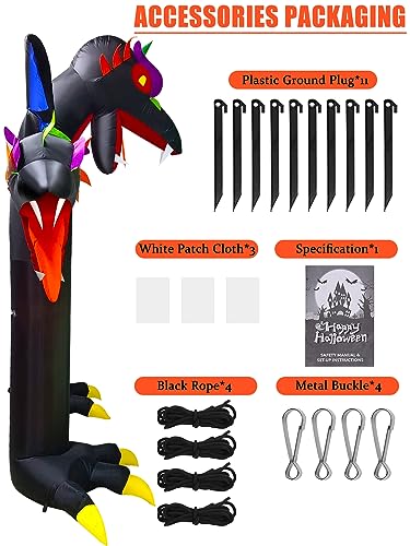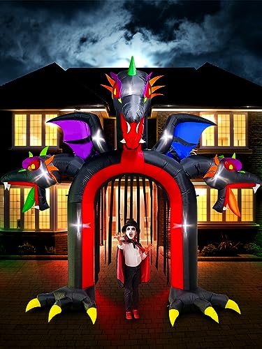 Stellen Sie sich vor, Sie stehen vor Ihrem Haus, umgeben von einer schaurigen Atmosphäre, während der Wind leise durch die Bäume weht. Plötzlich erblicken Ihre Nachbarn das beeindruckende 9,5 Fuß hohe aufblasbare Halloween-Drachentor von Kalolary, das majestätisch in Ihrem Vorgarten thront. Mit seinen drei furchterregenden Köpfen und dem schaurigen Design zieht es alle Blicke auf sich und sorgt für das perfekte Halloween-Feeling!