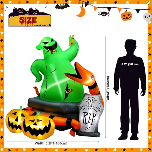 Unsere aufblasbare Halloween-Dekoration misst stolze 1,8 Meter in der Höhe und ist damit ein echter Blickfang. Sie wird mit sechs integrierten, hellen Lichtern geliefert, die eine einladende und zugleich gruselige Atmosphäre schaffen. Im Lieferumfang sind zudem zwei Seile, zwei Schnallen, sechs Bodeneinsätze, ein UL-zertifizierter Stecker sowie ein leistungsstarker Ventilator enthalten. Eine Anleitung ist ebenfalls beiliegenden, wohingegen sie möglicherweise nicht in deutscher Sprache verfasst ist.