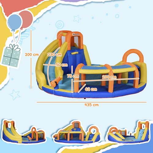Stellen Sie sich vor, es ist ein heißer Sommertag und Ihre Kinder sind bereit für ein Abenteuer, das sie nie vergessen werden. Die aufblasbare Hüpfburg mit Gebläse verwandelt Ihren Garten in einen aufregenden Wasserpark! Mit einer beeindruckenden Größe von 435 x 435 x 200 cm bietet diese Hüpfburg alles, was das Kinderherz begehrt: eine Rutsche, ein Wasserbecken, eine Kletterwand, einen Tunnel und eine Wasserdüse. Hier können Ihre kleinen Schätze nach Herzenslust toben, klettern, rutschen und springen – und das alles ohne das Haus zu verlassen!