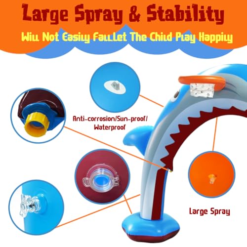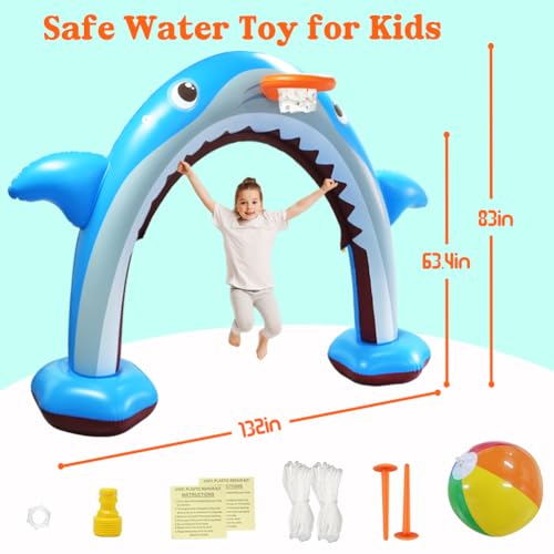 Der aufblasbare Bogen beeindruckt nicht nur durch seine Funktionalität, sondern auch durch sein einzigartiges Design. In Form eines Hais gestaltet, bringt er Farbe und Schwung in jede Sommerfeier. Zusätzlich wird er mit einem Korbreifen geliefert, der es den Kindern ermöglicht, Basketball zu spielen, während sie sich gleichzeitig abkühlen. Diese Kombination aus Wasser und Spiel macht den Hai-Sprinkler zu einem echten Highlight jeder Gartenparty.