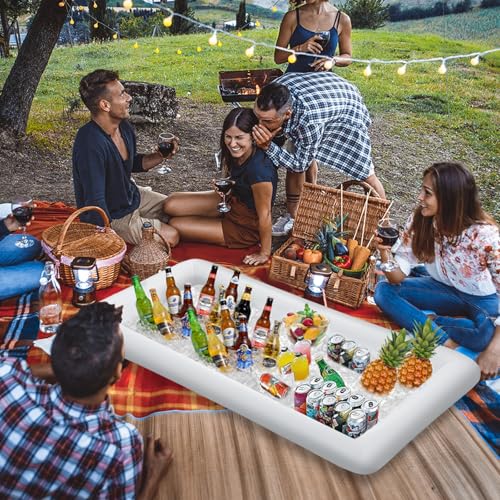 Machen Sie Ihre Sommerpartys unvergesslich mit den aufblasbaren MorTime Eis-Serviertabletts! Diese praktischen Begleiter halten Ihre Getränke und Snacks stundenlang kühl und frisch, während Sie mit Freunden und Familie feiern.