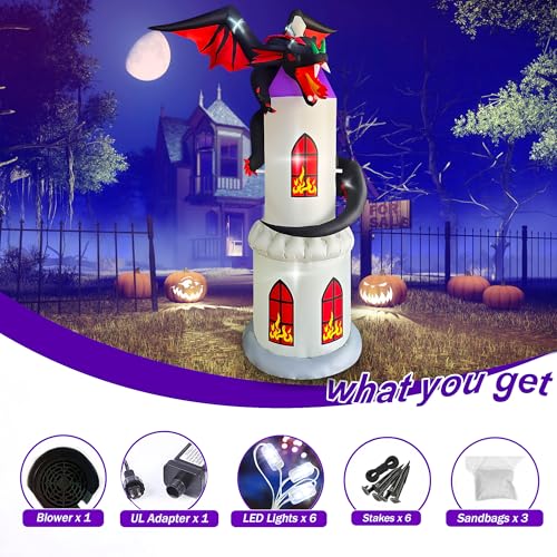 Dank der integrierten LED-Lichter strahlt das Drachenschloss in der Dunkelheit und verleiht Ihrem Garten, Ihrer Terrasse oder Ihrem Rasen eine magische Halloween-Aura. Dieses Drachenschloss sorgt nicht nur für gruselige Stimmung, sondern trägt auch dazu bei, dass Ihr Zuhause zu einem Highlight der Nachbarschaft wird.