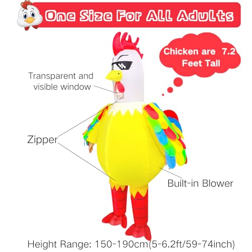 • Unisex-Design: Egal ob Mann oder Frau, jeder kann in diesem lustigen Huhn-Kostüm glänzen. Es passt sich perfekt an jede Körperform an und sorgt für ein bequemes Tragegefühl.
