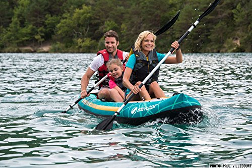 Das Kanu Kajak ist speziell für den Einsatz von zwei Erwachsenen und einem Kind konzipiert und bietet somit Platz für die ganze Familie. Mit einer Länge von 210 cm ist es kompakt und dennoch geräumig genug, um bequem darin zu sitzen und sich zu bewegen.