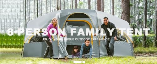 Mit Platz für bis zu 8 Personen ist dieses Zelt die ideale Wahl für Familienausflüge oder ein Wochenende mit Freunden. Es bietet ausreichend Platz für Schlafsäcke, Ausrüstung und sogar für den einen oder anderen Koffer, den Sie „vergessen“ haben. Und wenn Sie denken, dass es zu eng wird, denken Sie daran: Enge schafft Gemeinschaft – oder zumindest eine gute Geschichte für später!