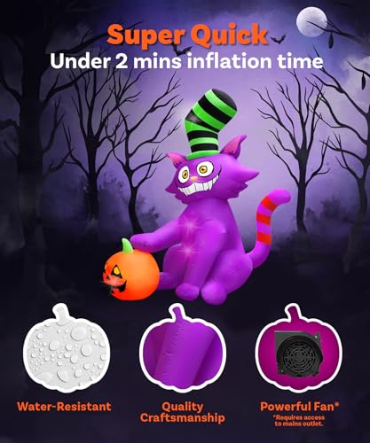 Der Aufbau dieser gruseligen Outdoor-Hof-Dekoration könnte nicht einfacher sein! Sie wird mit Spanngurten, Heringen und Seilen geliefert, um das aufblasbare Spielzeug sicher an Ort und Stelle zu befestigen. Der leistungsstarke, wasserdichte eingebaute Ventilator sorgt dafür, dass Ihr riesiges Halloween-Aufblasbares in nur wenigen Minuten aufgeblasen ist. So haben Sie mehr Zeit, um sich auf das Wichtigste zu konzentrieren: Süßes oder Saures! Und keine Sorge, selbst der Wind kann Ihrer Katze nichts anhaben – sie bleibt standhaft, egal wie stürmisch es wird.