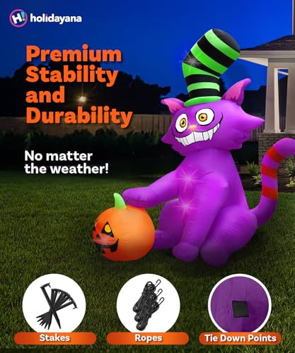 Diese aufblasbare Katze von Holidayana ist das perfekte Beispiel für hochwertige Halloween-Dekoration. Wenn sie vollständig aufgeblasen ist, wird sie sicher auffallen und Ihre Nachbarn dazu bringen, sich zu fragen, ob sie vielleicht in einer Halloween-Geschichte gefangen sind. Mit unseren originellen hauseigenen Designs stellen Sie sicher, dass Sie eine der größten, gruseligsten und einzigartigsten Halloween-Gartendekorationen in Ihrer Nachbarschaft haben! Ihre Nachbarn werden sich fragen, ob Sie einen Zauberer engagiert haben, um so eine beeindruckende Katze zu zaubern.