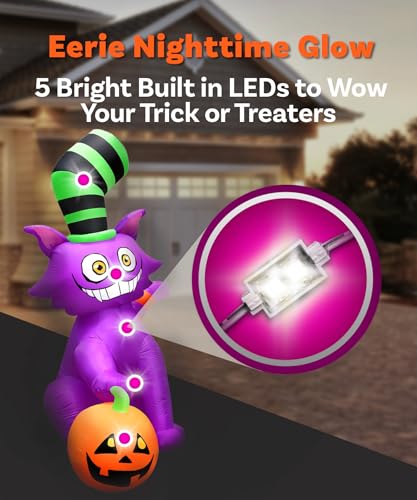 Um das gruselige Erlebnis zu vervollständigen, kommt diese Halloween-Hutmacherkatze mit hellen und gut platzierten LED-Lichtern. Diese Lichter verwandeln Ihren Garten in eine unheimliche Nachtansicht, die selbst die mutigsten Geister erschrecken wird. Ihre Gäste werden sich fragen, ob sie in einen Horrorfilm geraten sind, wenn sie Ihr bezauberndes Nachtdisplay sehen. Stellen Sie sich vor, wie die Kinder mit großen Augen vor Ihrer aufblasbaren Katze stehen und sich fragen, ob sie ihr ein paar Leckereien anbieten sollten oder ob sie besser auf der Hut sein sollten!