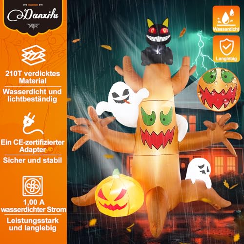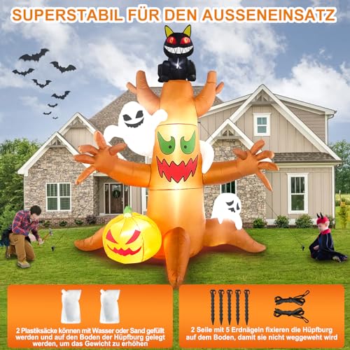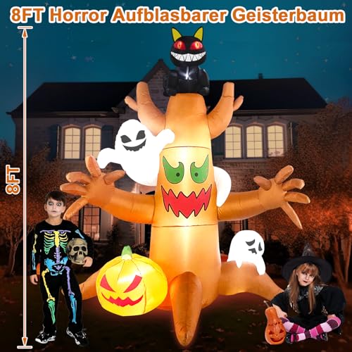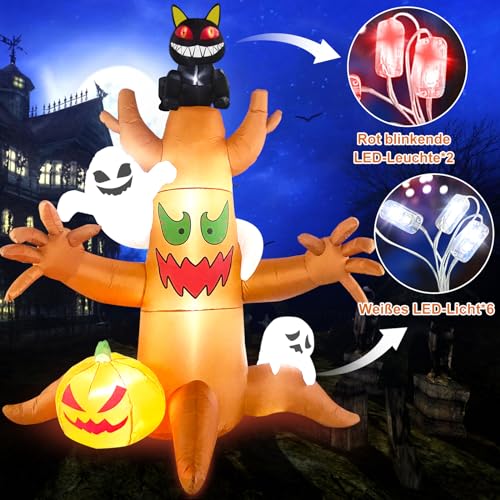 Gruseliger 240CM Halloween Aufblasbarer Baum mit LED, leuchtender Katze & Geistern – Perfekte Deko für Garten & Party!