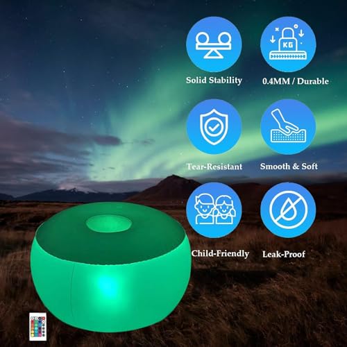 Was diesen Stuhl wirklich einzigartig macht, sind die **farbwechselnden LED-Leuchten**. Mit der praktischen Fernbedienung können Sie zwischen verschiedenen Modi wählen – ob konstantes Licht oder ein fröhliches, mehrfarbiges Blinken. Stellen Sie sich vor, Sie veranstalten eine Gartenparty und der Stuhl wird zum Mittelpunkt der Aufmerksamkeit, während er in bunten Farben leuchtet und die Gäste zum Staunen bringt. Wer braucht schon eine Discokugel, wenn man einen LED Aufblasbaren Stuhl hat?