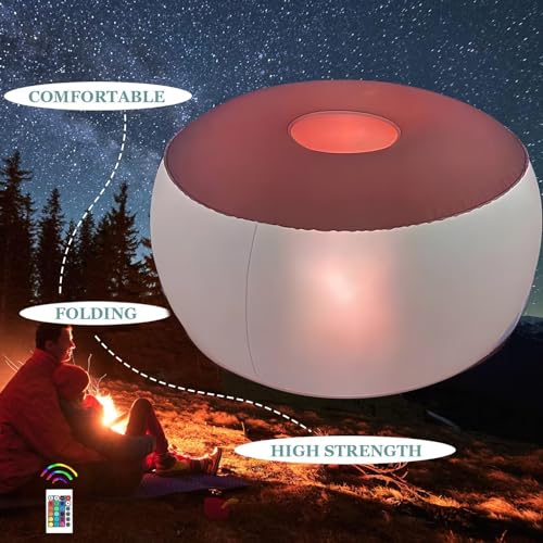 Ein weiterer Vorteil des LED Aufblasbaren Stuhls ist seine **Faltbarkeit**. Er lässt sich im Handumdrehen aufblasen und entleeren, sodass er problemlos verstaut werden kann. Ob im Auto auf dem Weg zum nächsten Campingausflug oder im Büro für eine entspannte Yoga-Session – dieser Stuhl ist immer bereit, Ihnen den ultimativen Komfort zu bieten. Und mit einem Gewicht von nur 400 g ist er so leicht, dass selbst Ihr Hund ihn tragen könnte – naja, vielleicht nicht ganz, aber Sie wissen, was ich meine!